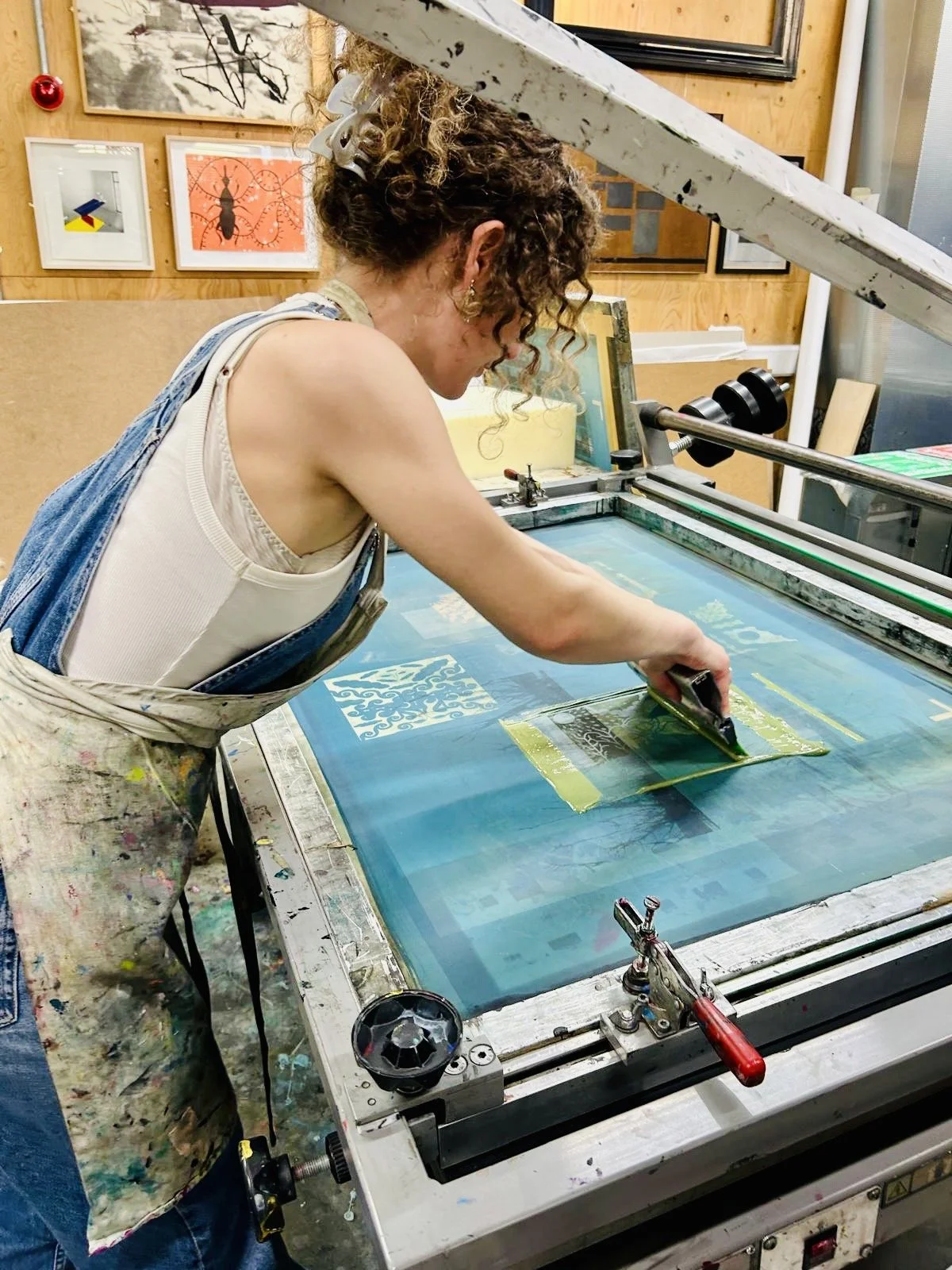 Then I printed the story quilt using silkscreen print on fabric, resulting in a nine-layer screen print.