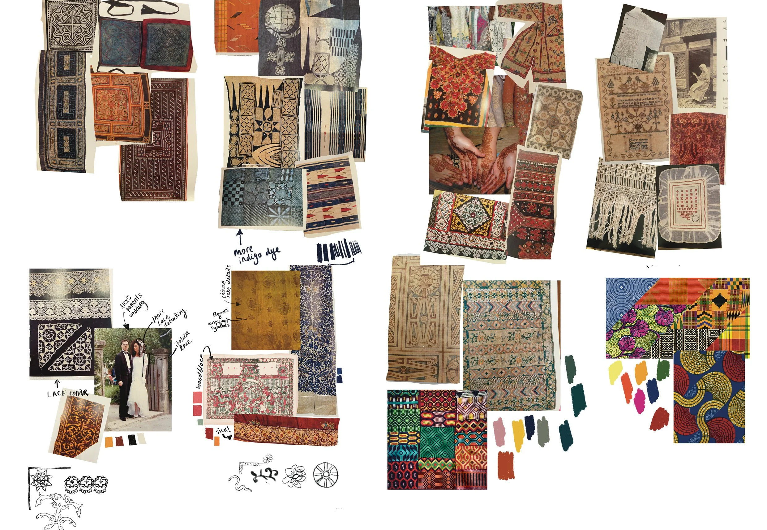 The imagery I created draws upon folk art. It incorporates symbols, patterns, and motifs from each couple's respective cultures, combining and transforming them to reflect their intercultural relationships.