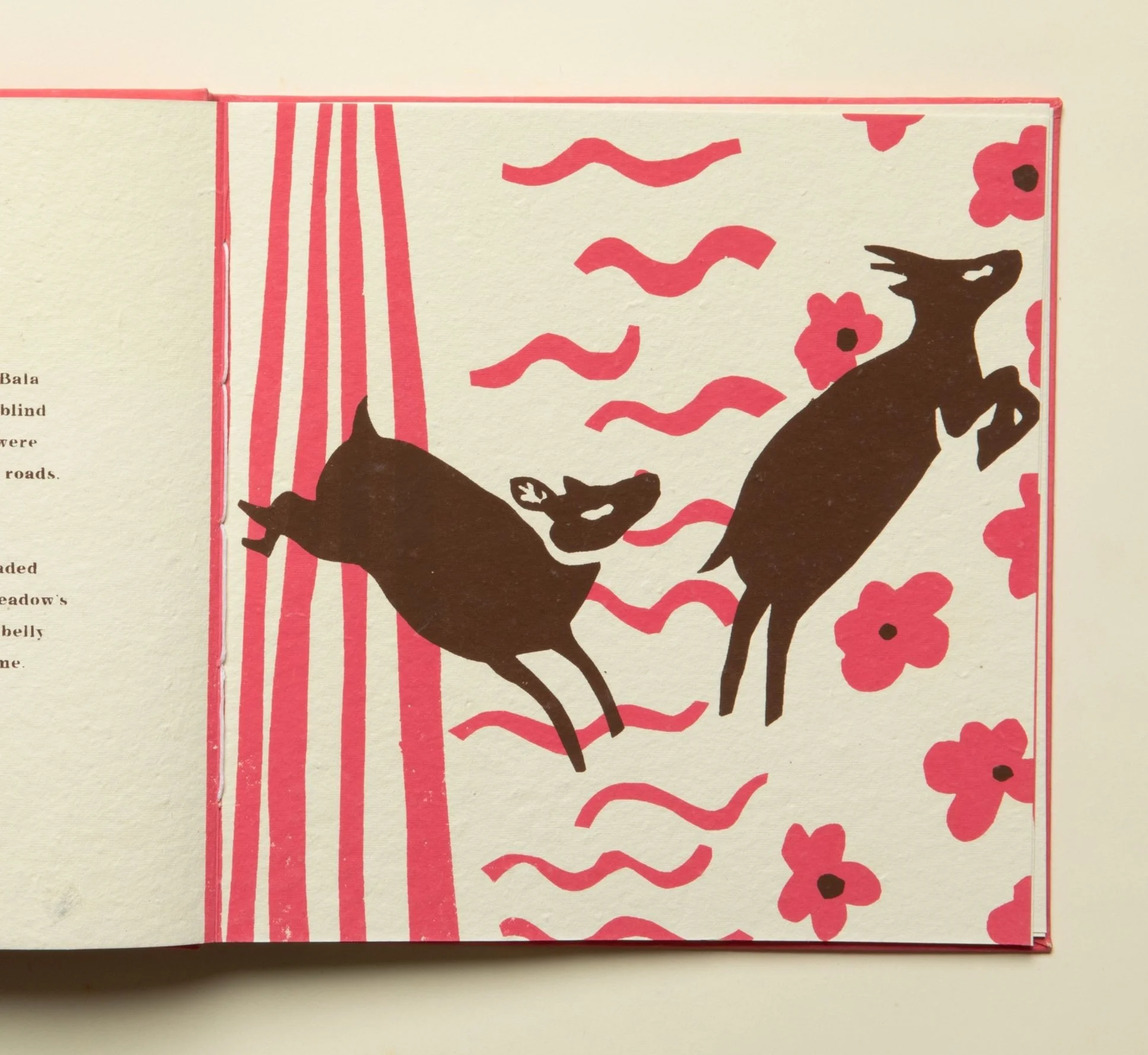 Each page was then silkscreen printed by hand, with two layer colour separation. A true labour of love.